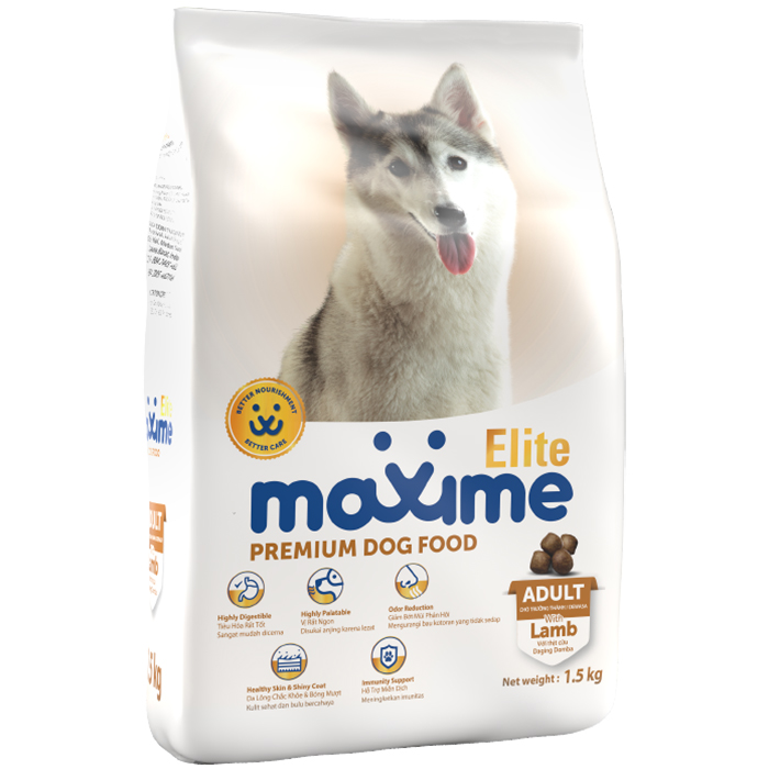 Thức ăn cho chó trưởng thành Maxime Elite Dry Dog Food Adult Lamb Flavor – Hương vị thịt cừu. Thức ăn hoàn chỉnh cho tất cả các giống chó trưởng thành. Có các loại: gói 400g, 1,5kg và 10kg. Xuất sứ: Philippines.